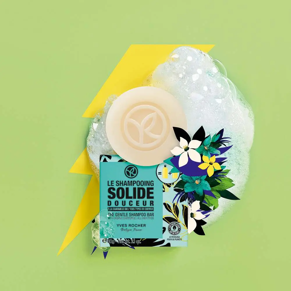 Ce Shampooing Solide Douceur lave les cheveux en douceur, les rend souples et brillants.