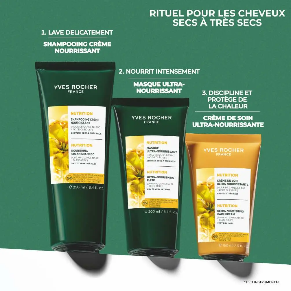 • Type de cheveux : cheveux secs à très secs
